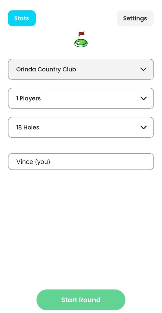 Type in Course Name, Select # of Players (Up to 4), Select 9 or 18 Holes. Type in Player Names. Then Press Start Round.